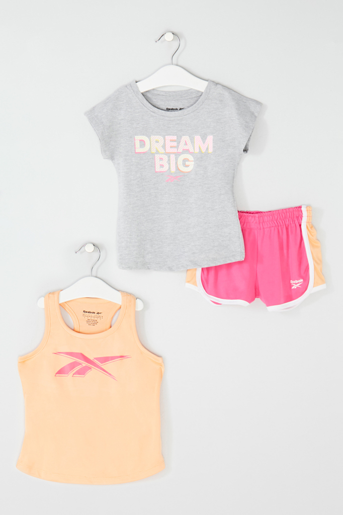 Ensemble 3 pièces - Orange, gris et rose