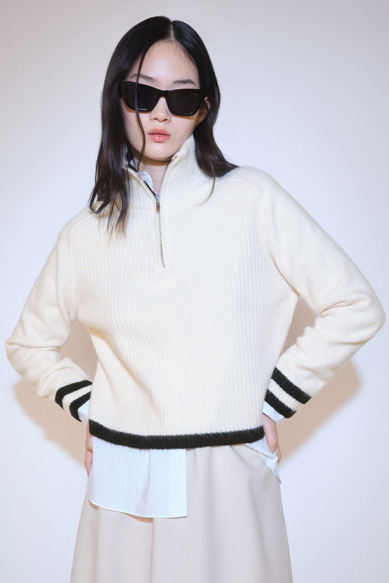 Pull-over zippé détail rayures.
