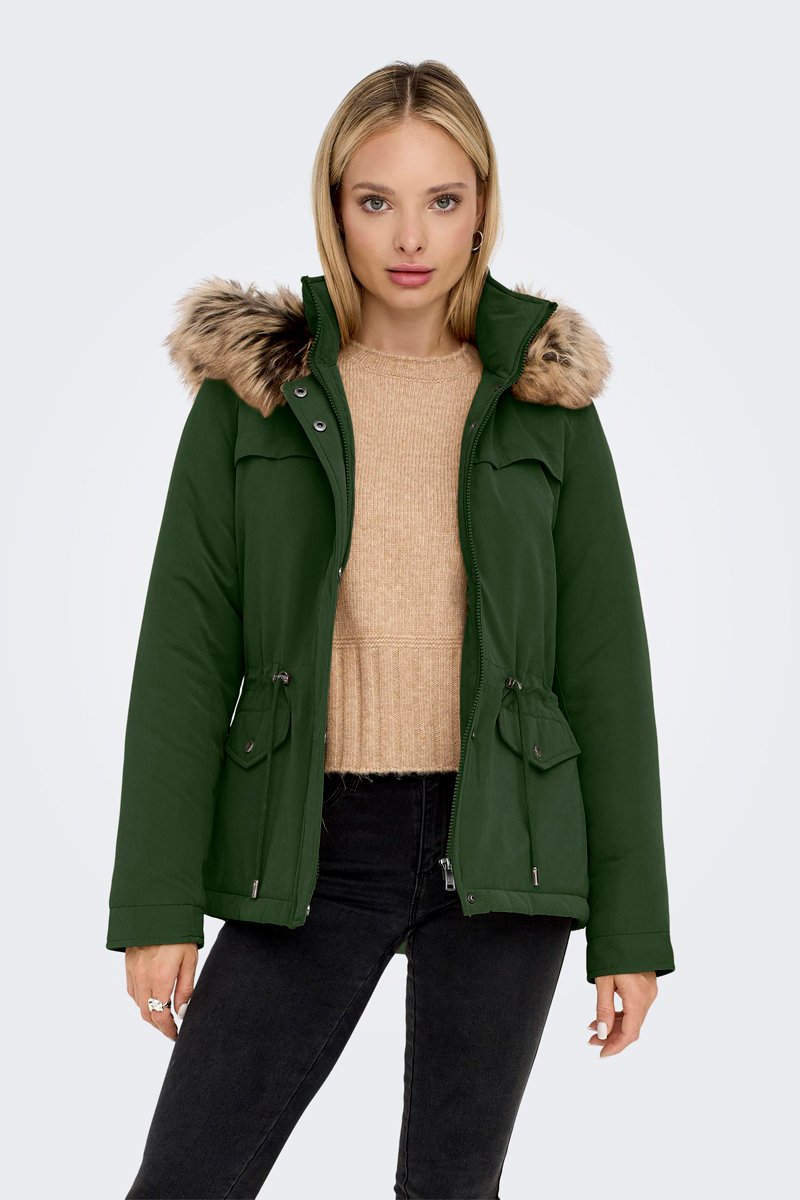 Parka à capuche avec fourrure synthétique.
