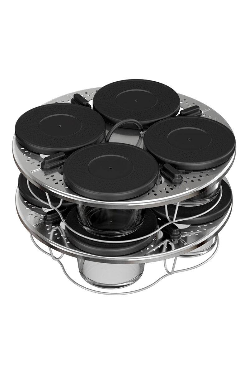 Préparez 8 portions individuelles et profitez d'un support en acier inoxydable innovant et breveté à 2 niveaux qui garantit une utilisation simple d'une seule main.
