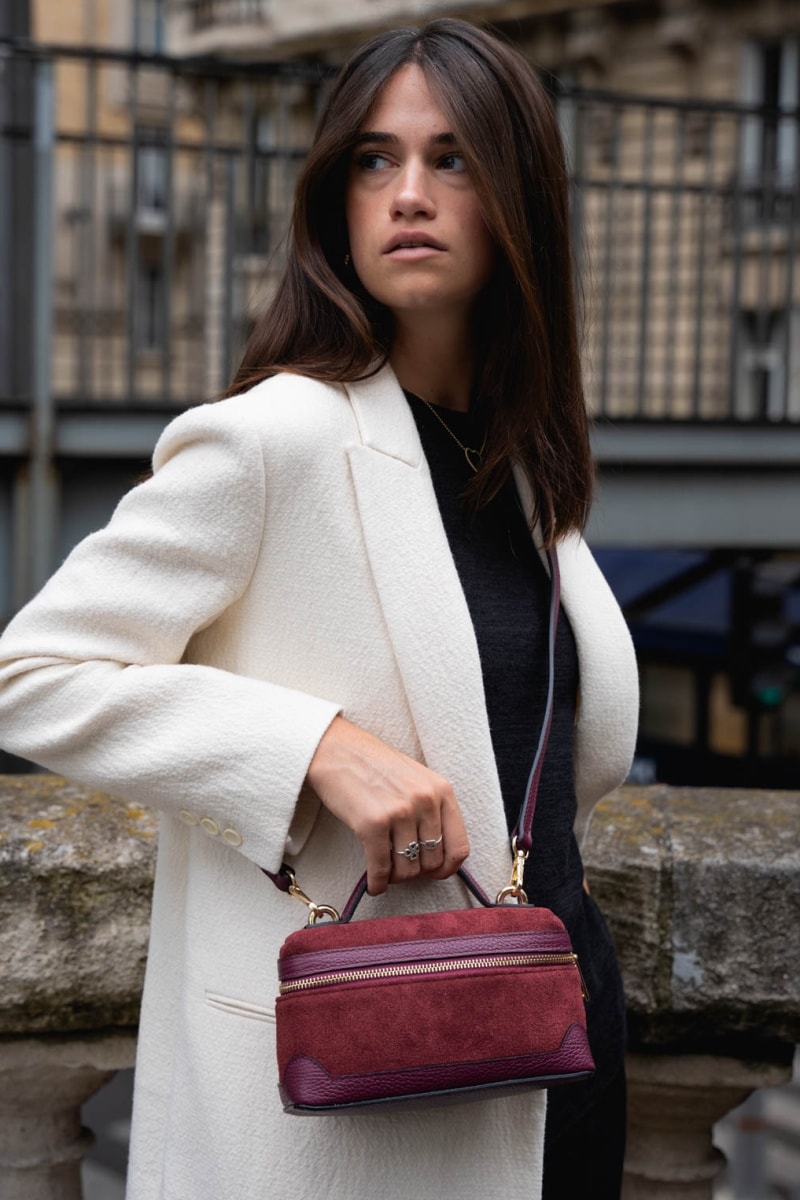 Sac bandoulière en nubuck Simos Suede - Bordeaux - Rouge