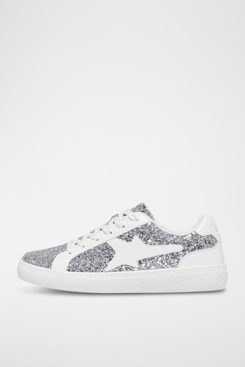 Empiècements pailletés devant et sur les côtés. Fermeture à lacets.