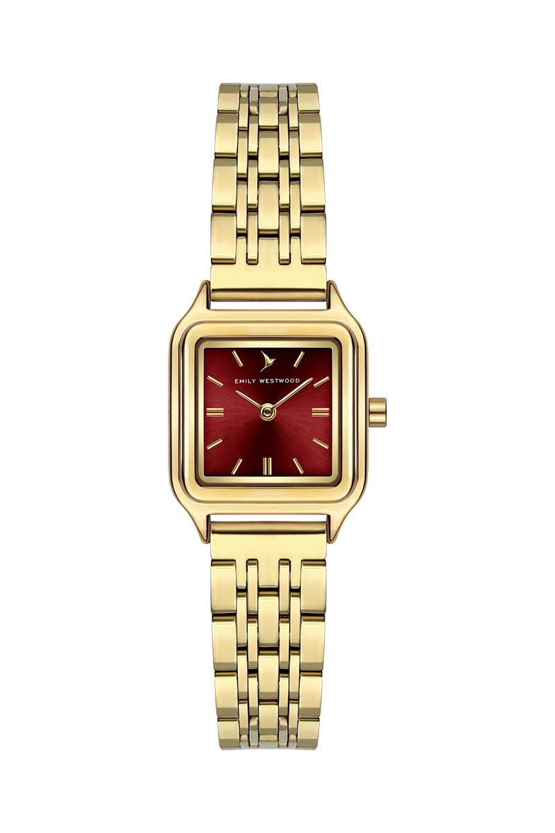 Montre à quartz en acier inoxydable - Doré et bordeaux - Emily Westwood