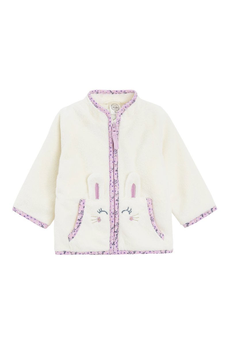 Empiècements à motifs fleurs à l’encolure, sur les manches, devant et à la base.