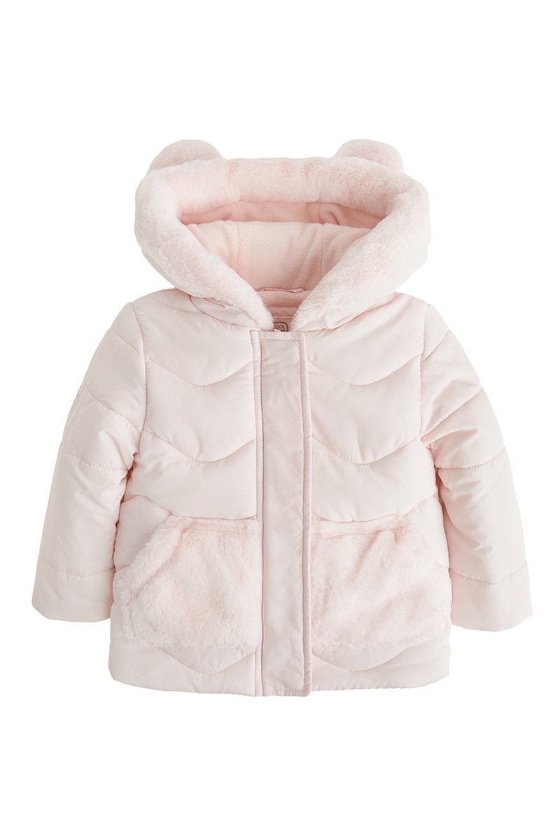 Empiècements en fourrure synthétique sur la capuche et devant.