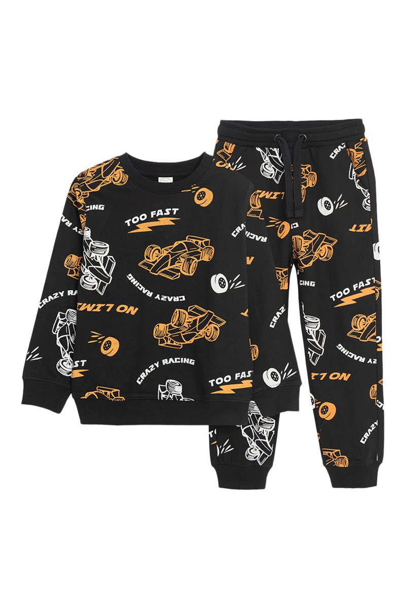 Ensemble avec lettrage et à motifs fantaisie comprenant :