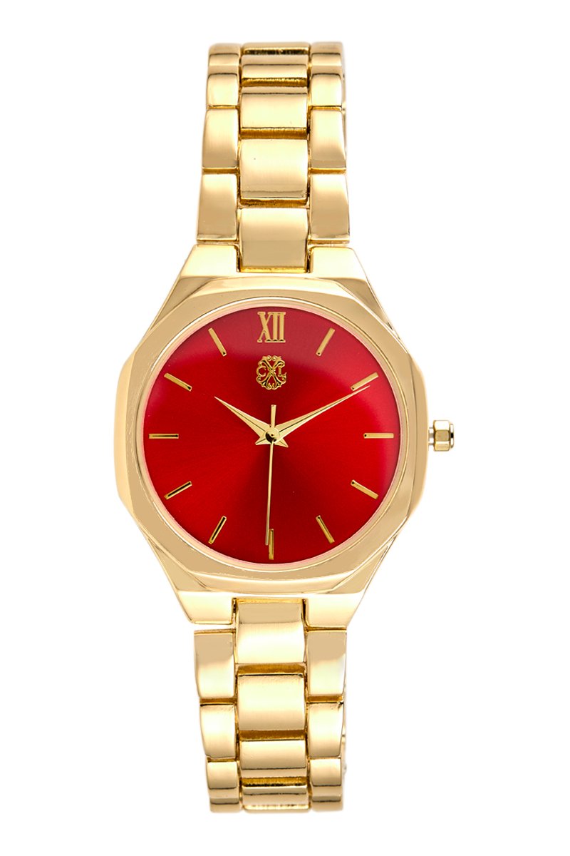 Montre à quartz en alliage - Doré et rouge