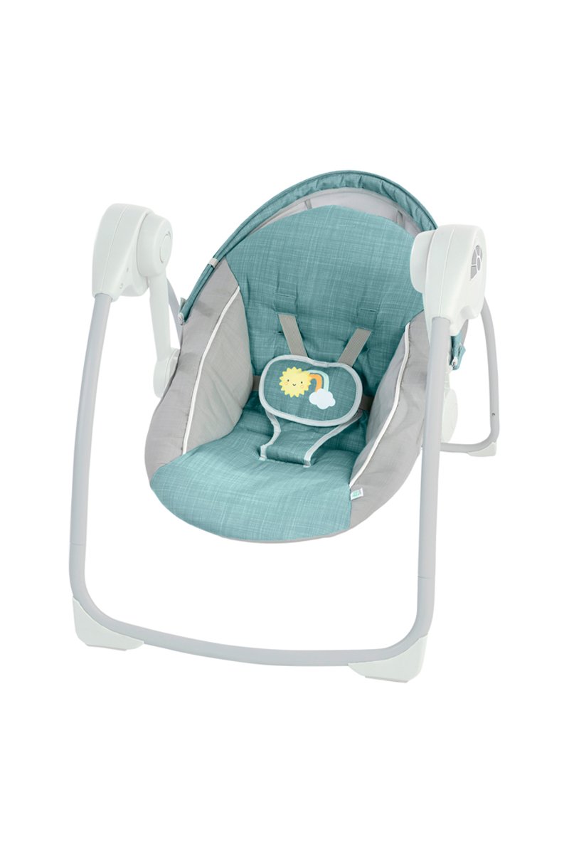 Avec cette balancelle compacte qui vous accompagne, c'est l'aventure et des jeux garantis : 2 jouets inclus (1 soleil qui brille et 1 arc-en-ciel en peluche).