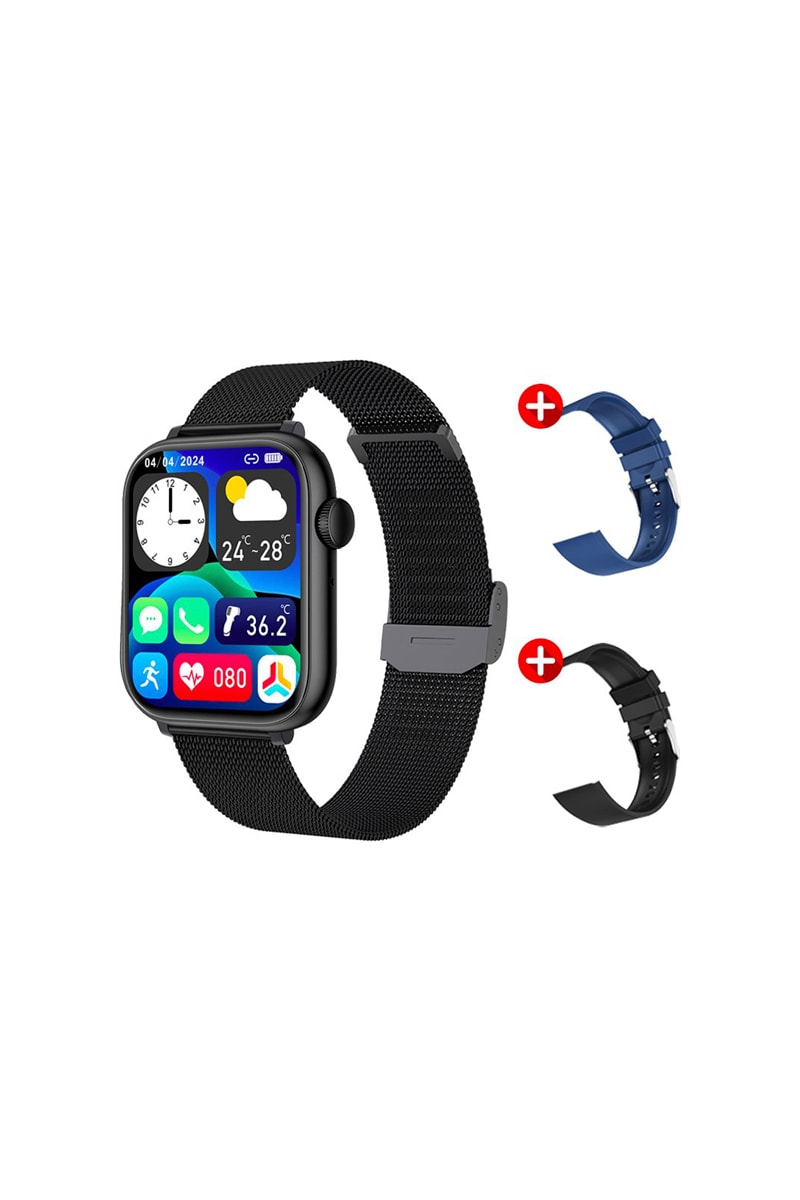 - 3 bracelets (Acier inoxydable noir / silicone noir / silicone bleu)