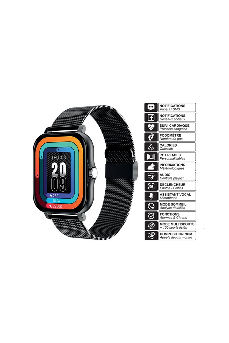 - Montre connectée EKO - Modèle Balnéo - Coloris Noir (bracelet milanais)