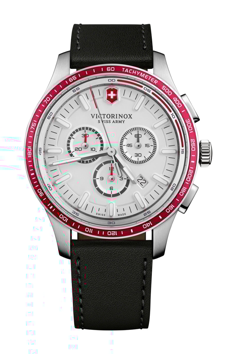 Montre à quartz en cuir - Tachymètre - Noir et rouge