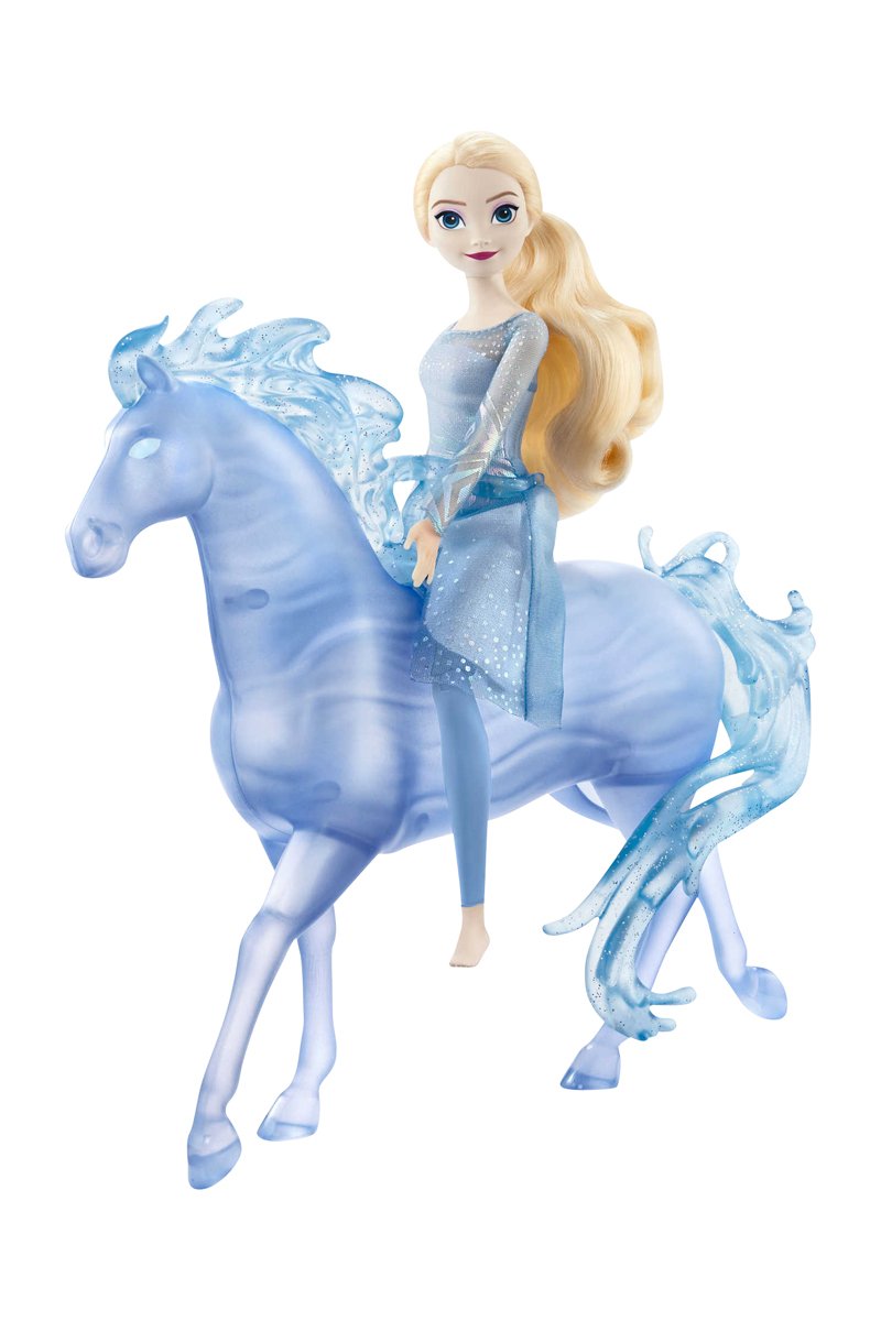 Inspirés du célèbre film Disney La Reine des Neiges 2, Elsa et Nokk sont prêts pour s’aventurer au-delà d’Arendelle ! Cette poupée Elsa est articulée au niveau des genoux pour qu’elle puisse monter son cheval et porte sa robe bleue emblématique du film. Nokk, l’Esprit de l’eau qui prend la forme d’un cheval, est majestueux dans ses teintes de bleu translucide.