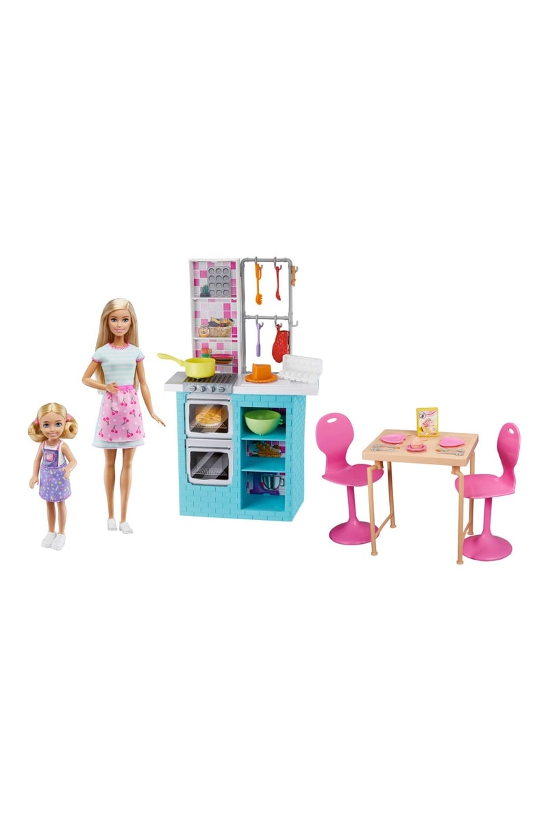 Les poupées Barbie®et Chelsea peuvent s’amuser en cuisine avec plus de 15 accessoires réalistes, tels que des ustensiles de cuisine, des ingrédients et bien plus encore.