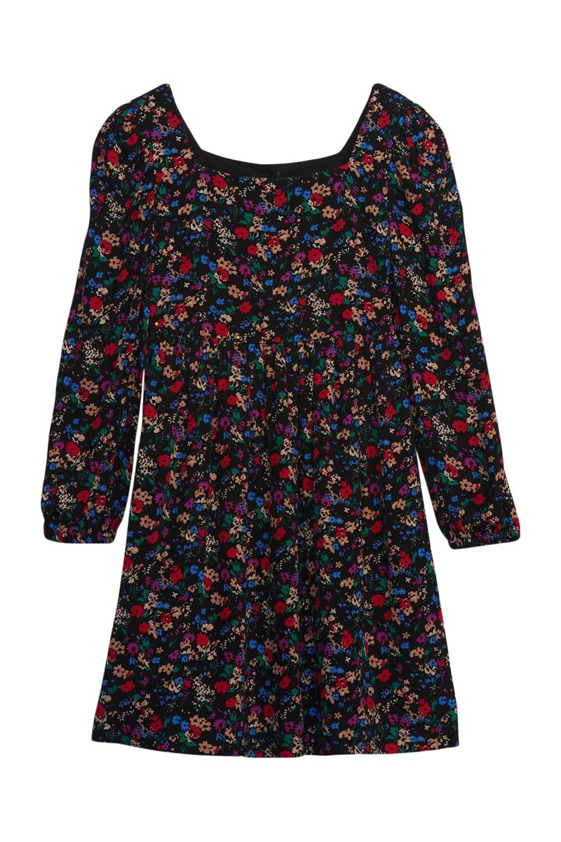 Robe à manches longues volantées et élastiques.