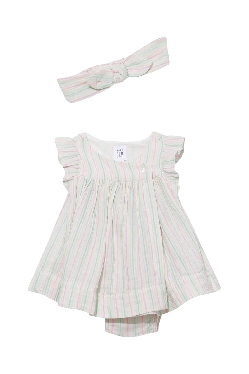Bandeau noué et body-robe - Blanc et vert clair