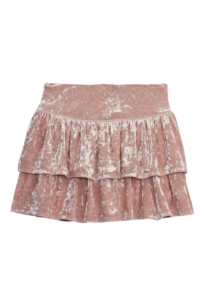 Jupe volantée en velours - Vieux rose