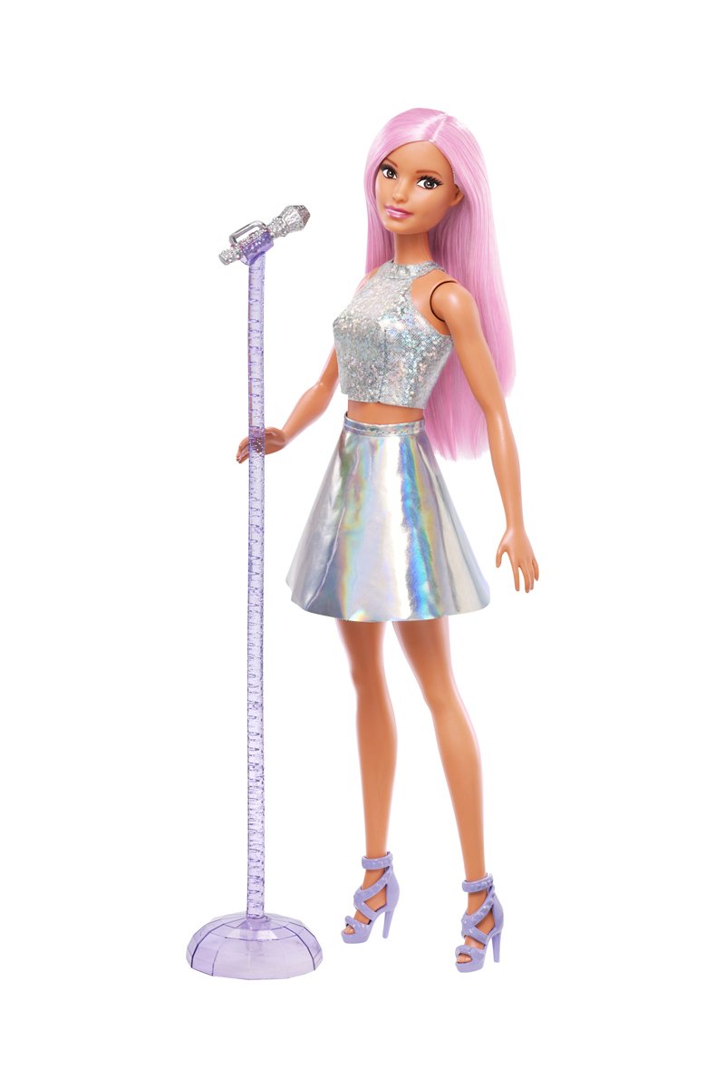 Vêtue d’un ensemble scintillant, elle est prête à conquérir le public derrière son micro à pied. Ses longs cheveux roses viennent compléter parfaitement son look éblouissant ! Découvrez et collectionnez toutes les poupées de la gamme Barbie® Métiers pour permettre à votre enfant d’imaginer tout ce qu’il voudrait devenir (chaque poupée est vendue séparément; certains produits peuvent ne pas être commercialisés). Inclut une poupée Pop Star avec habillages et chaussures, ainsi qu’un micro sur pied.