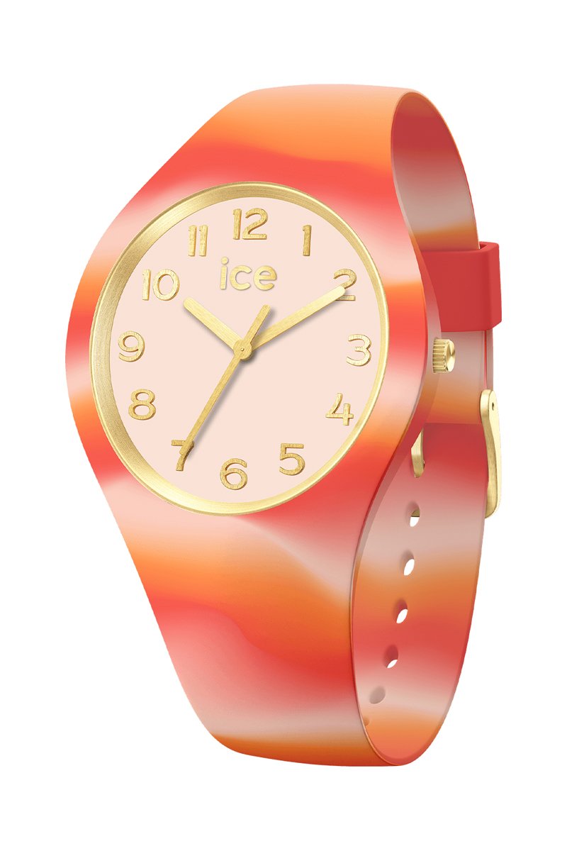 Montre à quartz en silicone ICE Tie and dye - Rouge et orange