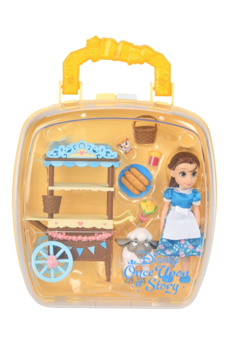La collection Once Upon a Story rend hommage au pouvoir de l'imagination et de la créativité à travers les personnages emblématiques de Disney. Des centaines d'histoires féériques n'attendent qu'à être créées ! Cette poupée articulée de 12,5 centimètres environ représente Belle enfant, alors qu'elle rêvait déjà de voyager vers les contrées décrites dans ses livres. Elle est fournie dans une mallette avec fenêtre transparente, poignée pailletée et fermeture à bouton-pression, et est accompagnée d'une multitude d'accessoires, d'une figurine Zip, d'un mouton et d'un chariot à nourriture.