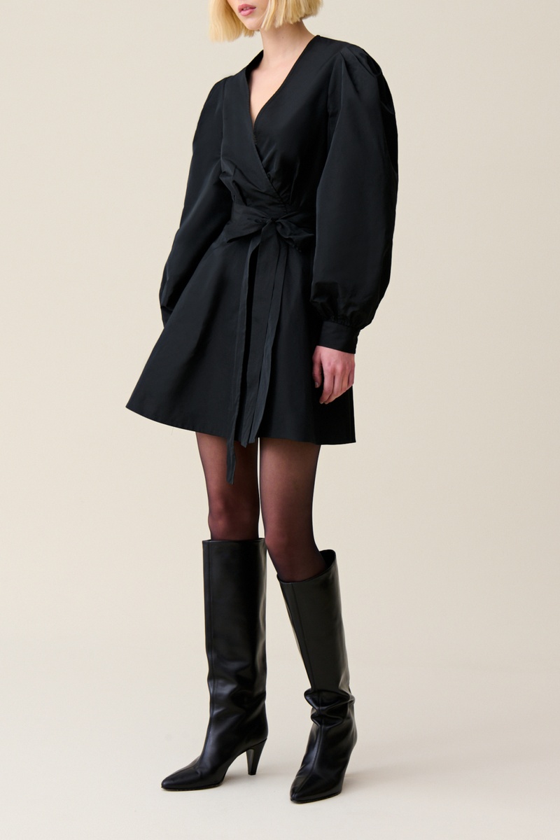 Robe portefeuille à manches longues bouffantes boutonnées.