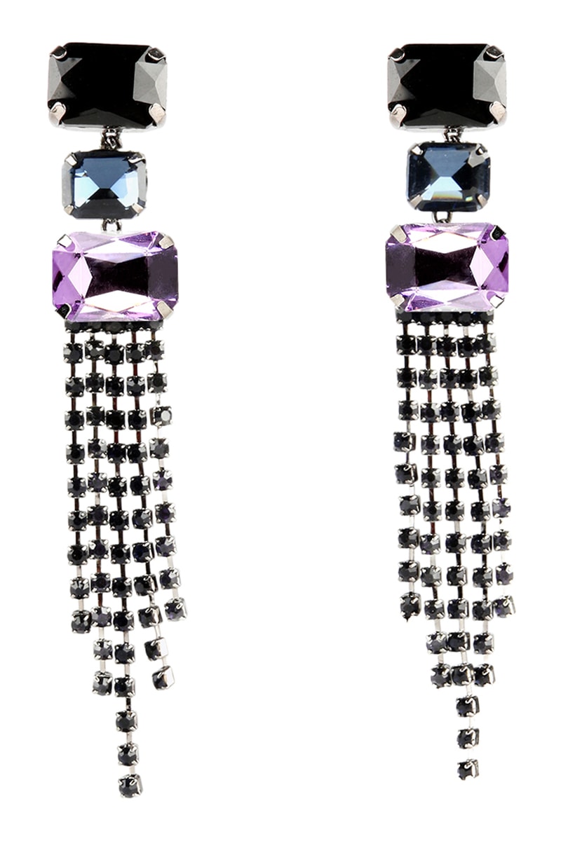 Boucles d'oreilles pendantes serties de cristaux.