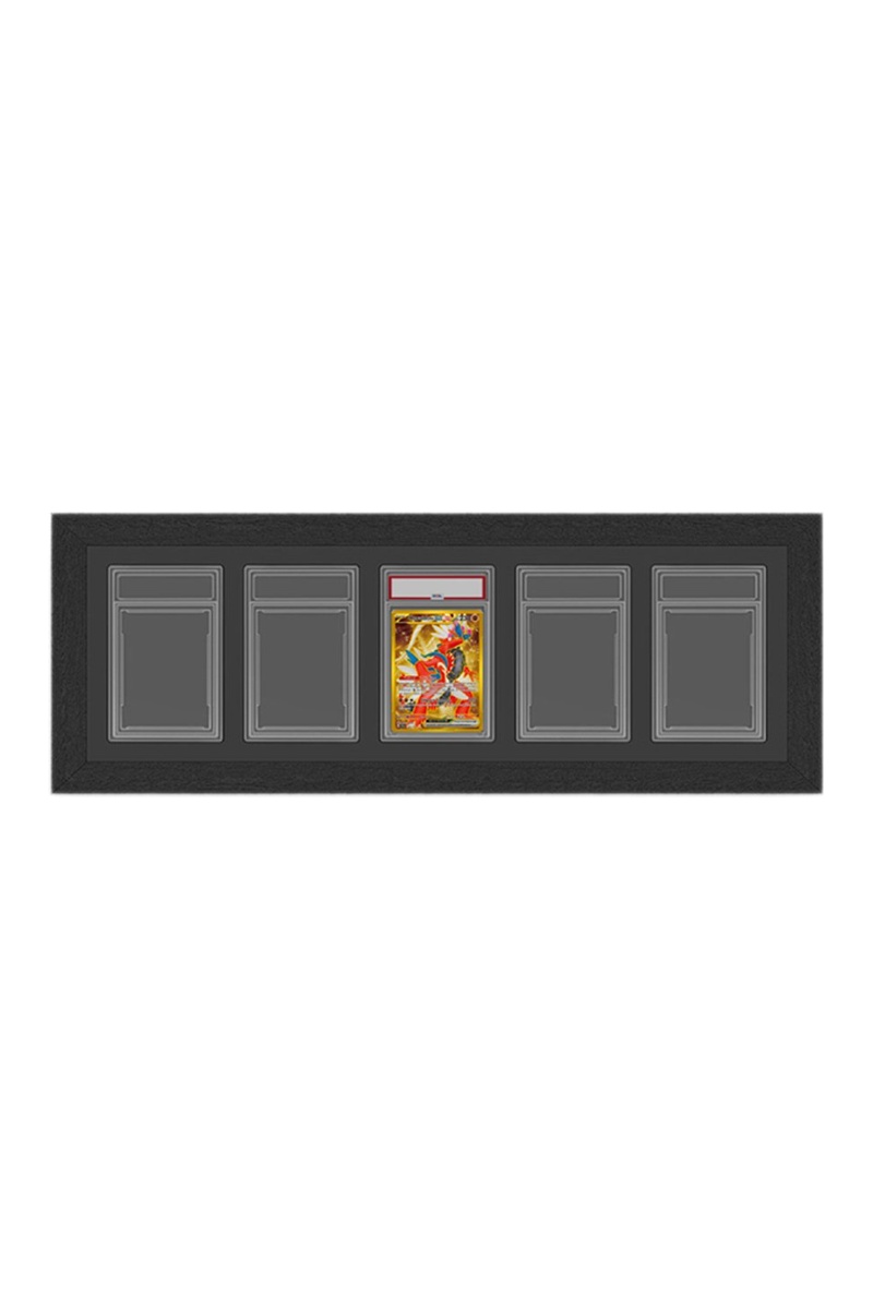 Décoratif et robuste, ce cadre vous permet de mettre en valeur vos 5 cartes favorites protégées dans leur étui au format PSA.