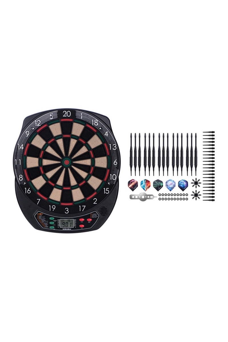 - Livré avec 12 fléchettes, 40 pointes, adaptateur Europe, kit de fixation et manuel d’utilisation