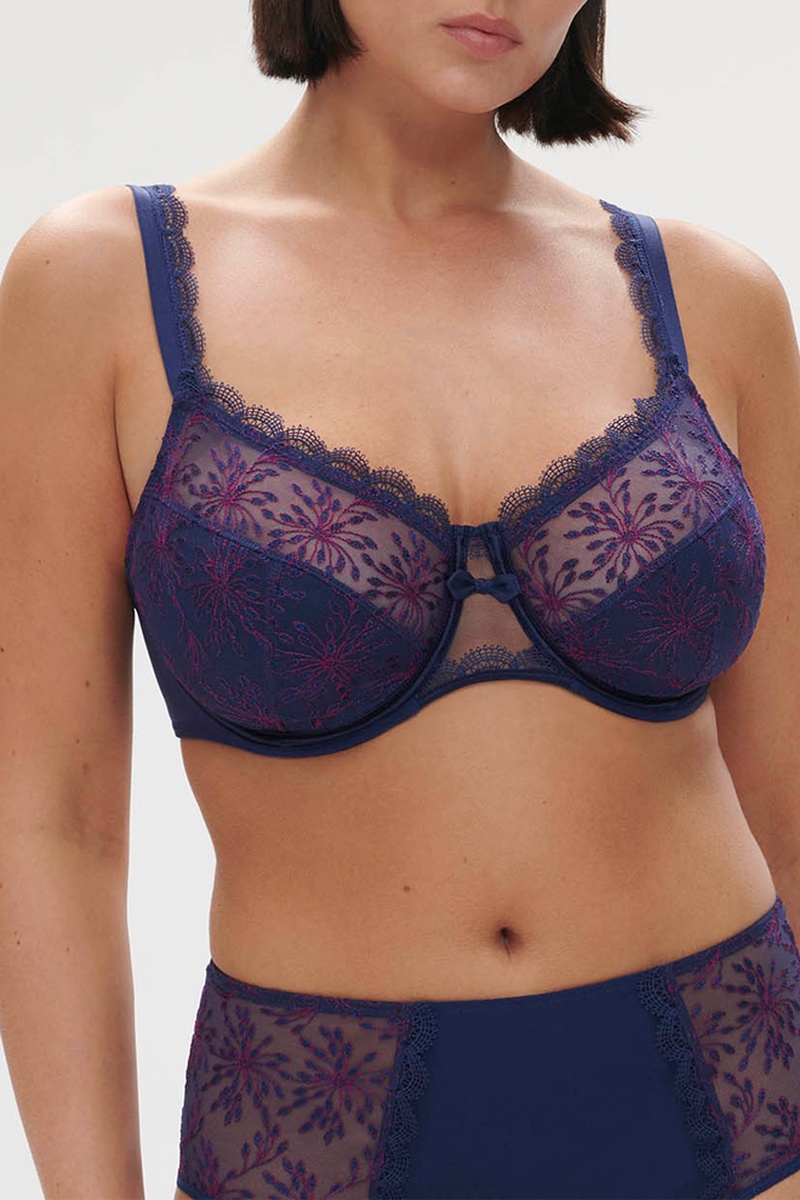 Empiècement en tulle et nœud satiné à l’entre-bonnet.