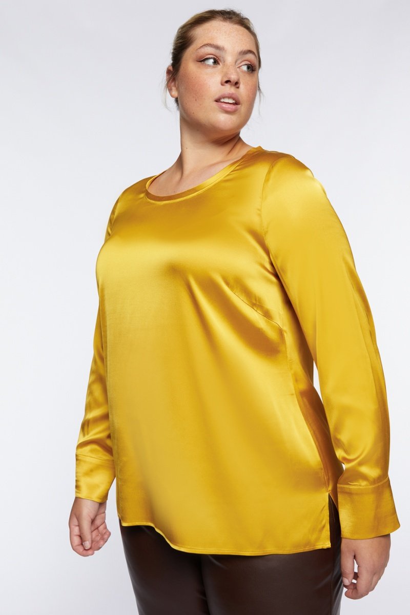 Blouse satinée à manches longues.