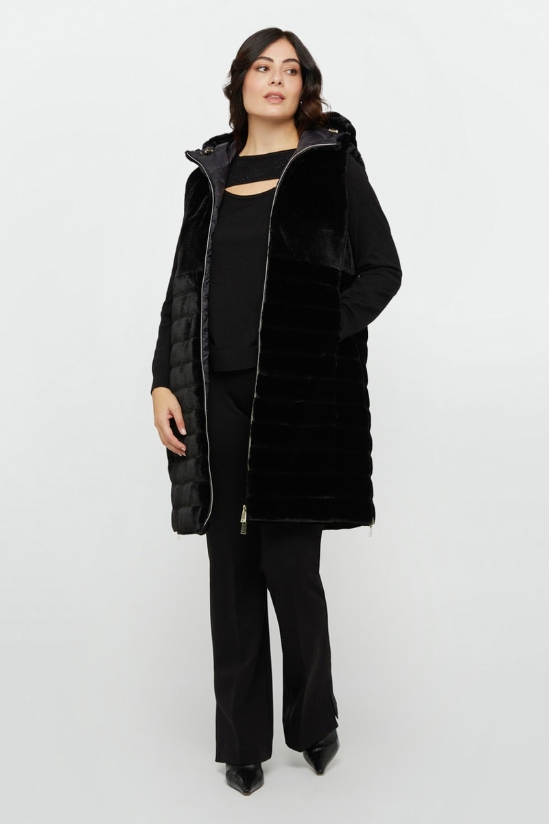 Doudoune longue réversible sans manches - Noir