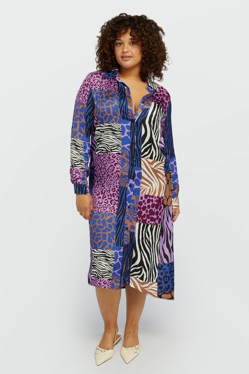 Robe chemise - Violet et bleu