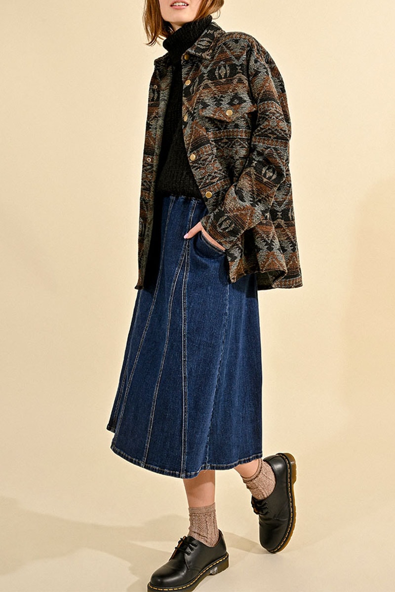 Jupe midi en jean taille haute - Bleu - Molly Bracken