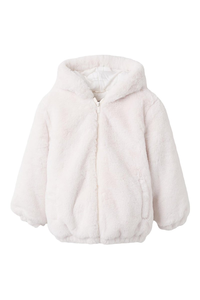 Veste à capuche en fourrure synthétique.