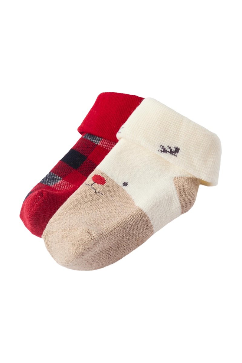 2 paires de chaussettes antidérapantes - Ecru et rouge