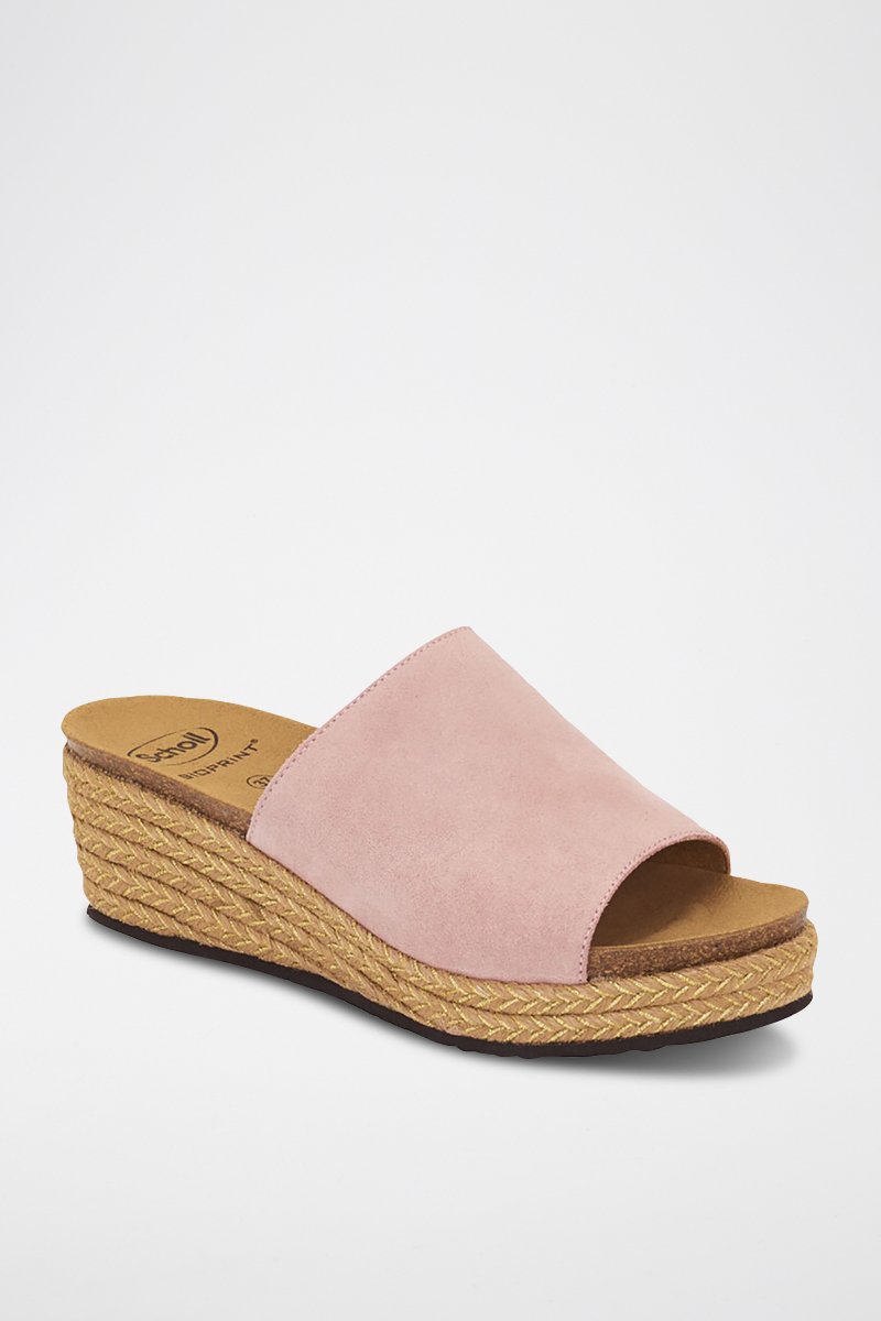Mules compensées en nubuck.