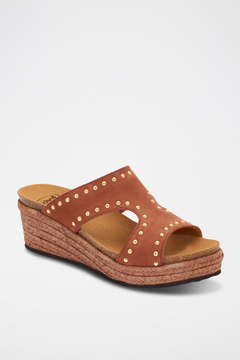 Mules compensées en nubuck.