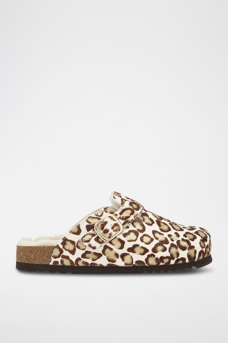 Sabots fourrés en cuir de mouton Fae New - Beige
