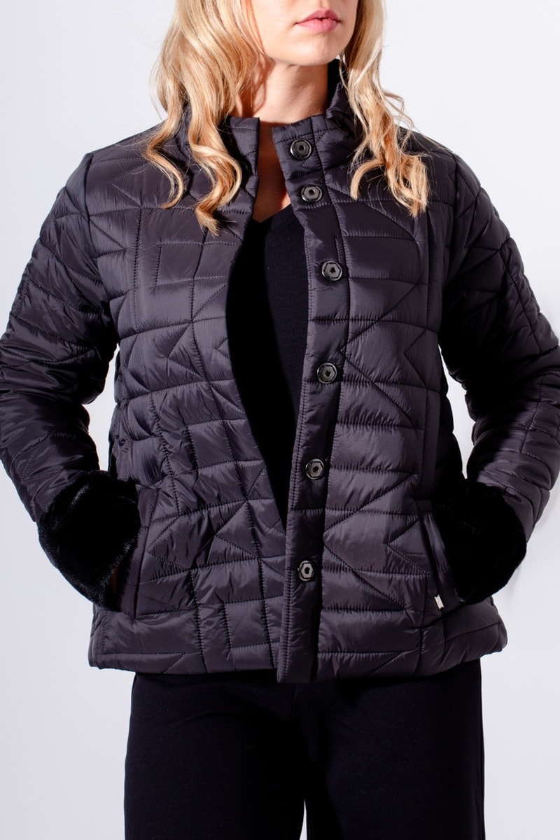 Doudoune à manches longues avec empiècements en fourrure synthétique.