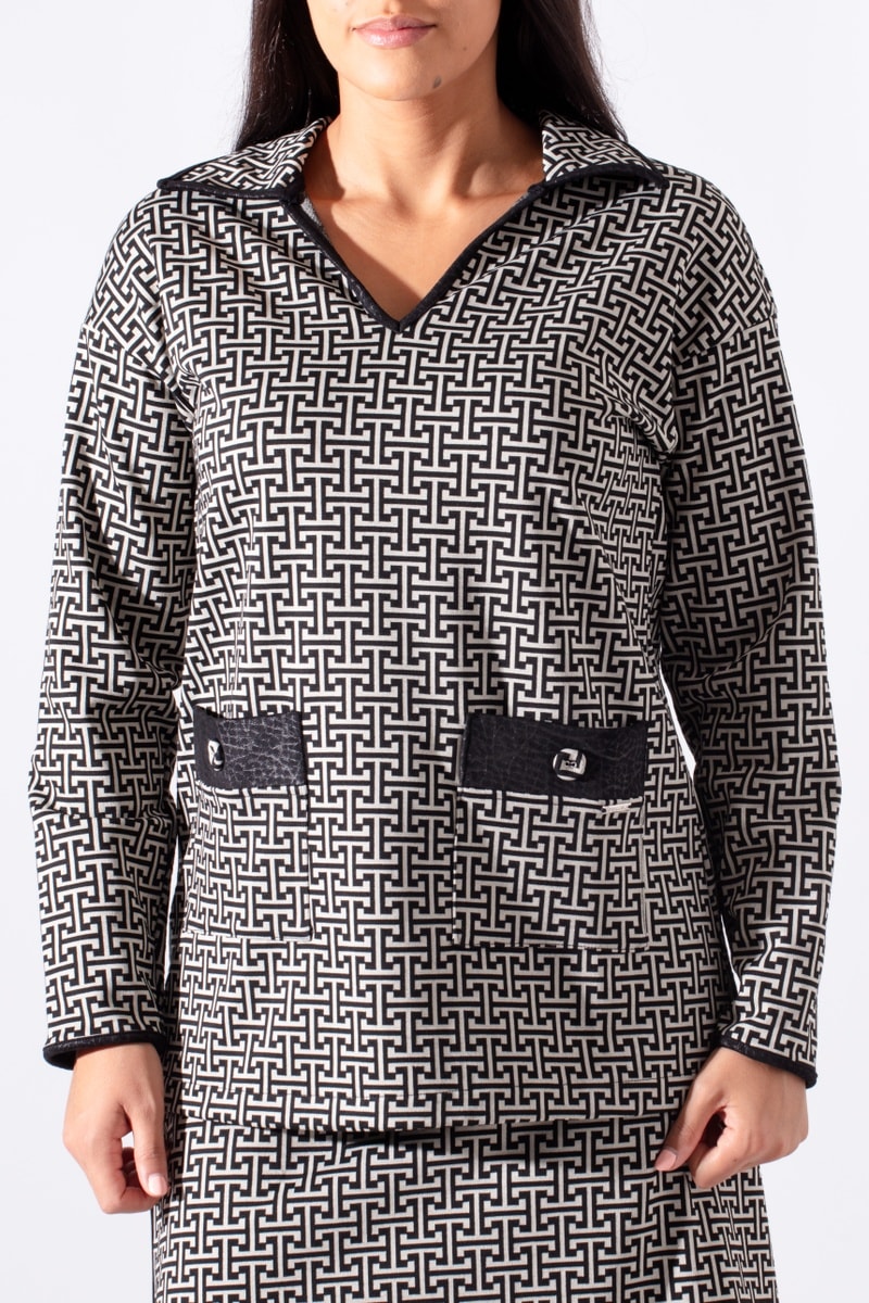 2 poches boutonnées avec empiècements à motifs fantaisie.