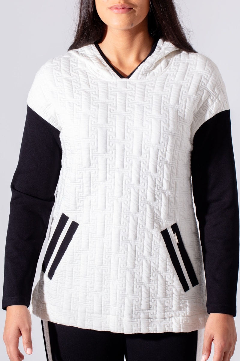 Motifs fantaisie en relief sur la capuche, les manches, devant et au dos.