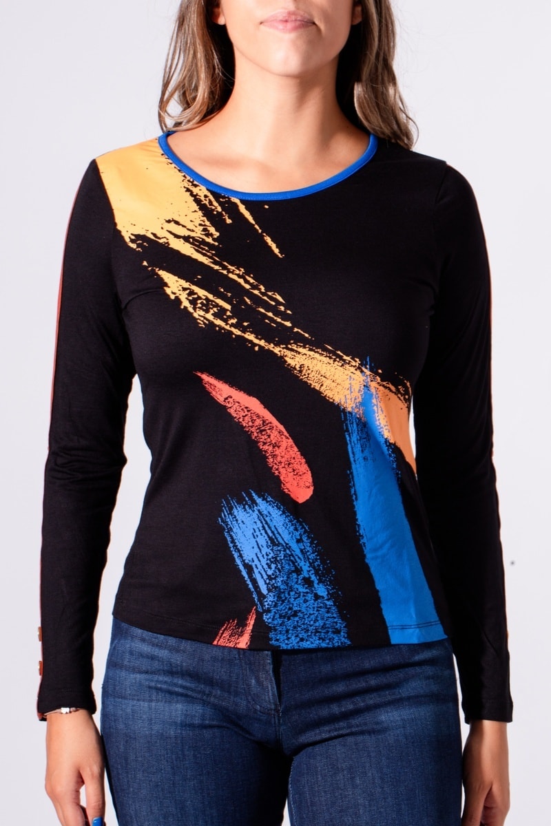 Top à manches longues boutonnées avec bande contrastante.