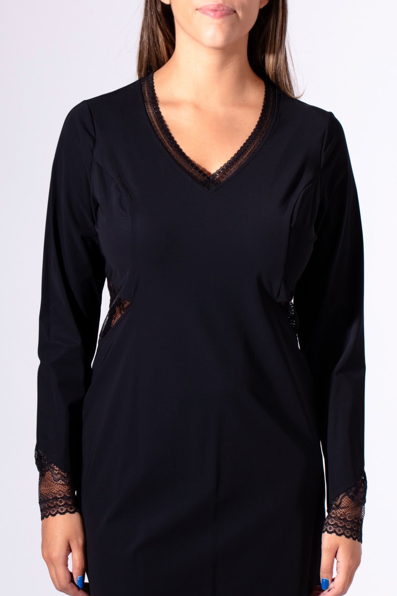 Empiècements en dentelle à l’encolure, sur les manches et les côtés.