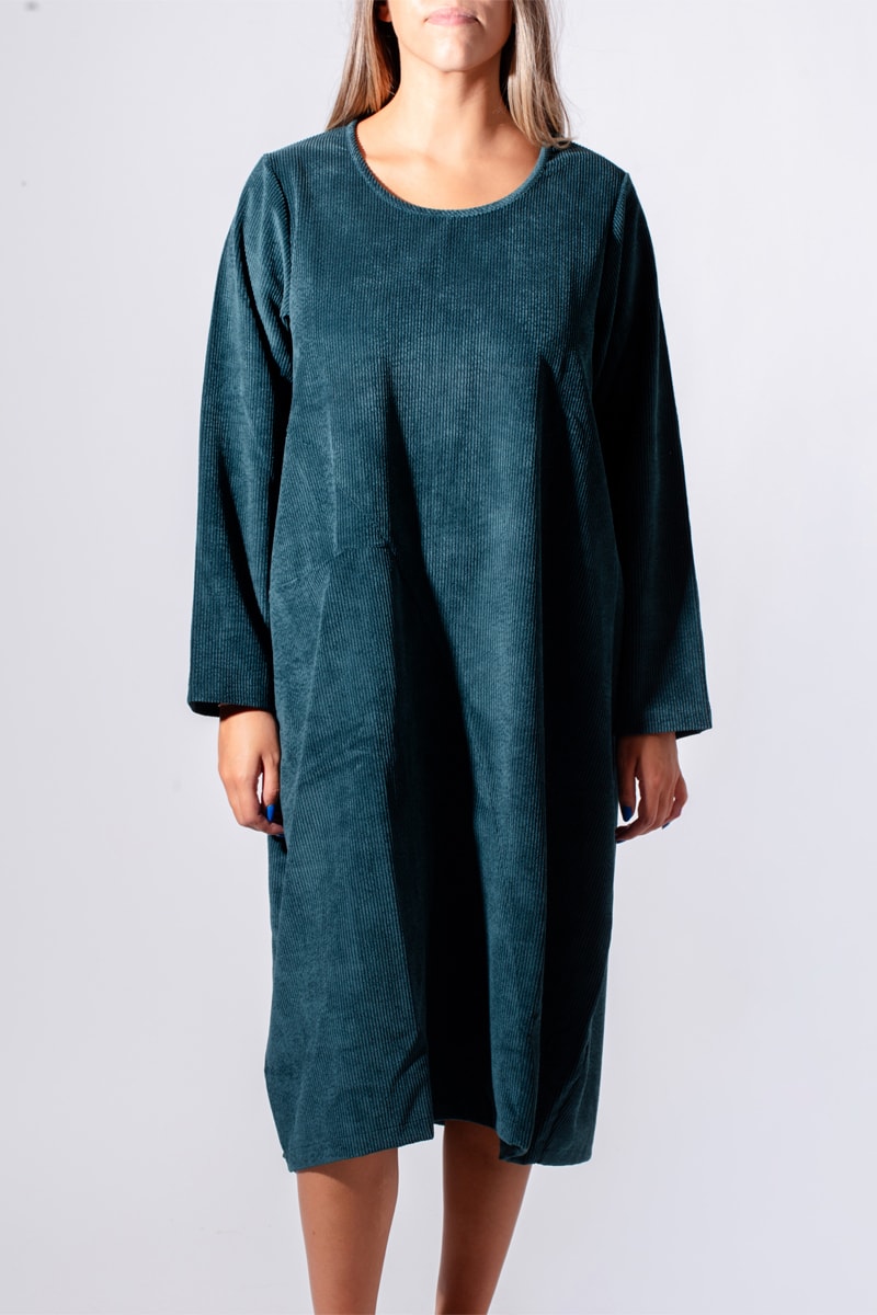 Robe droite en velours - Bleu canard