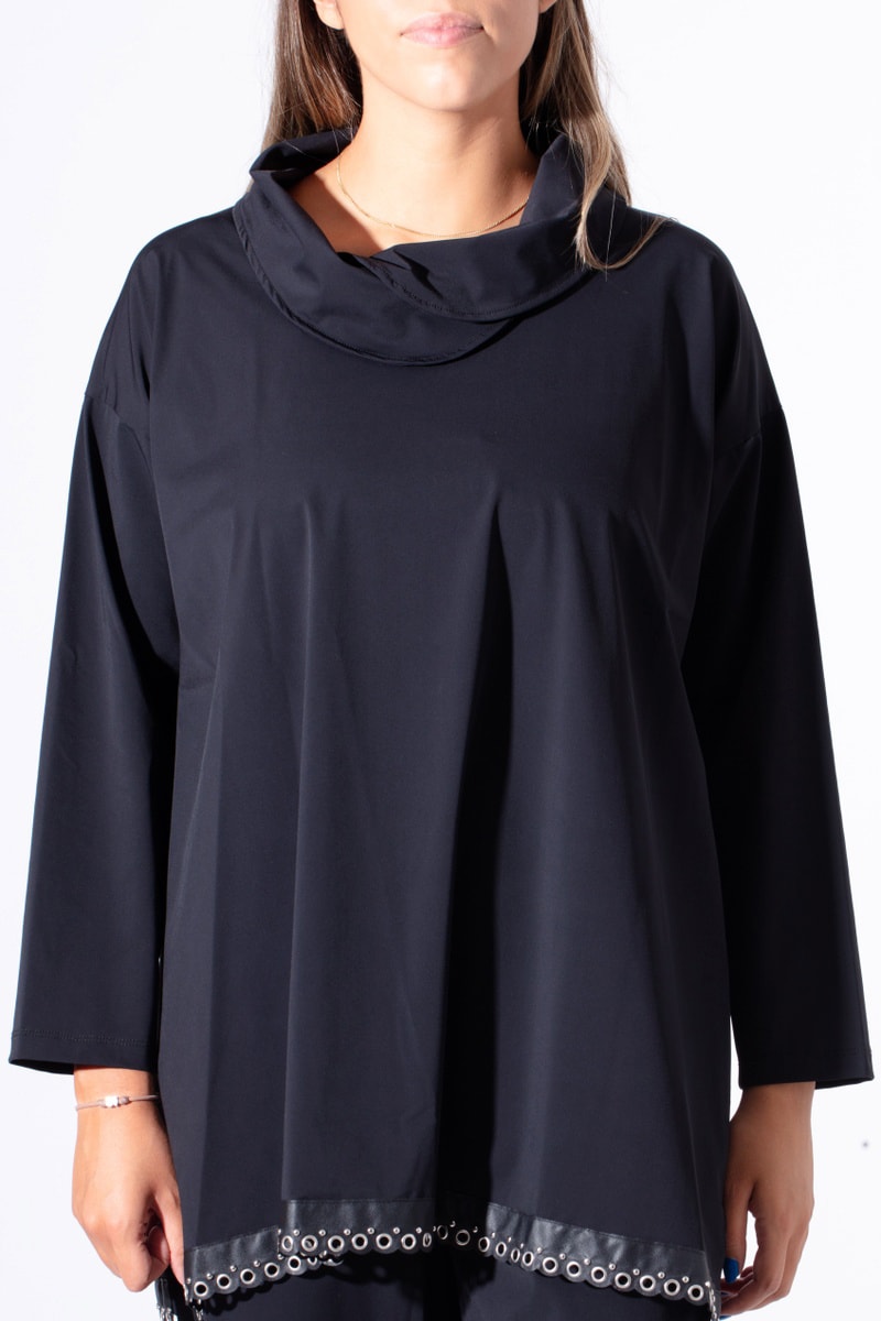 Empiècements effet cuir avec œillets décoratifs à la base.