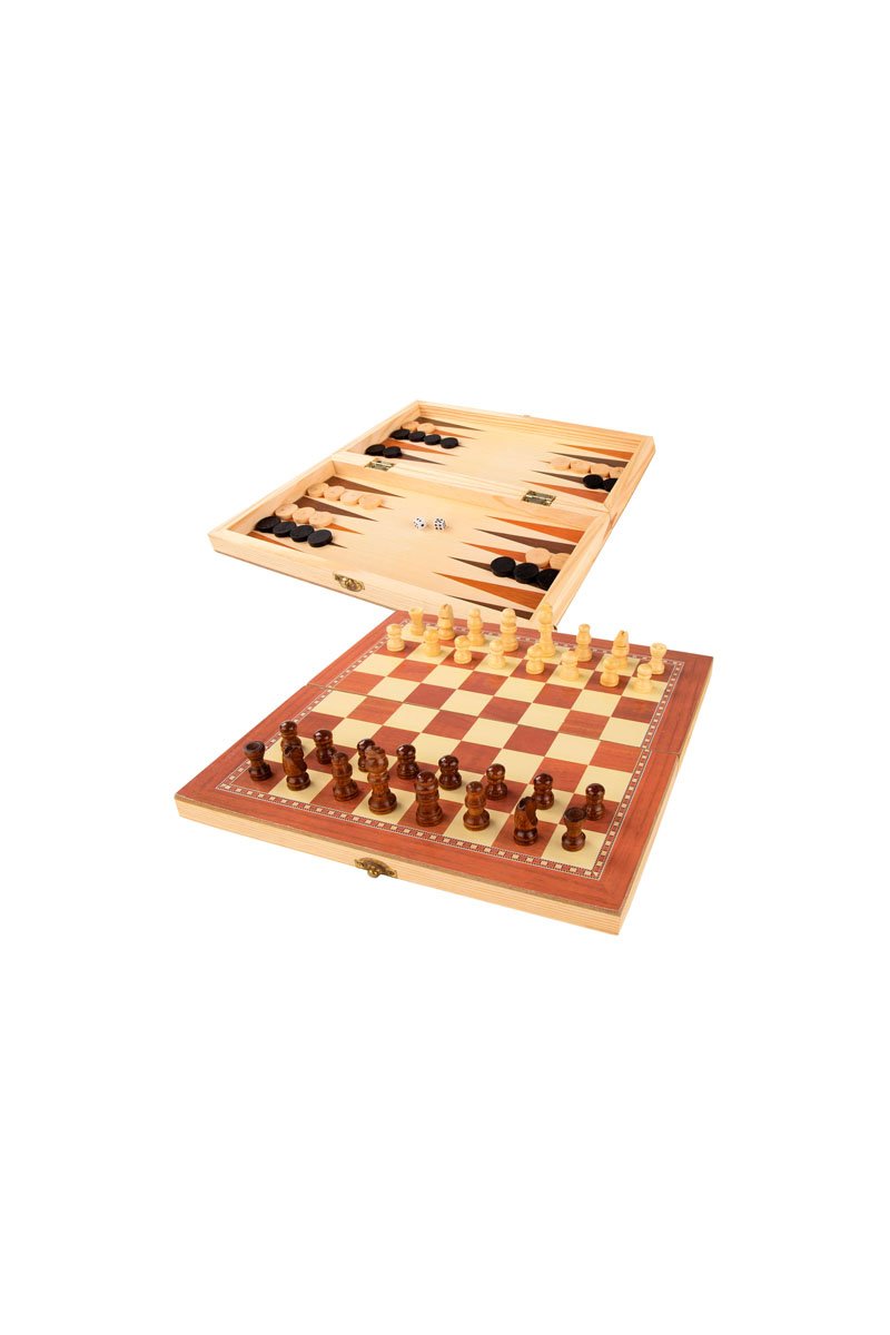 Jeux de dames, d’échecs et de backgammon 3-en-1 en bois.