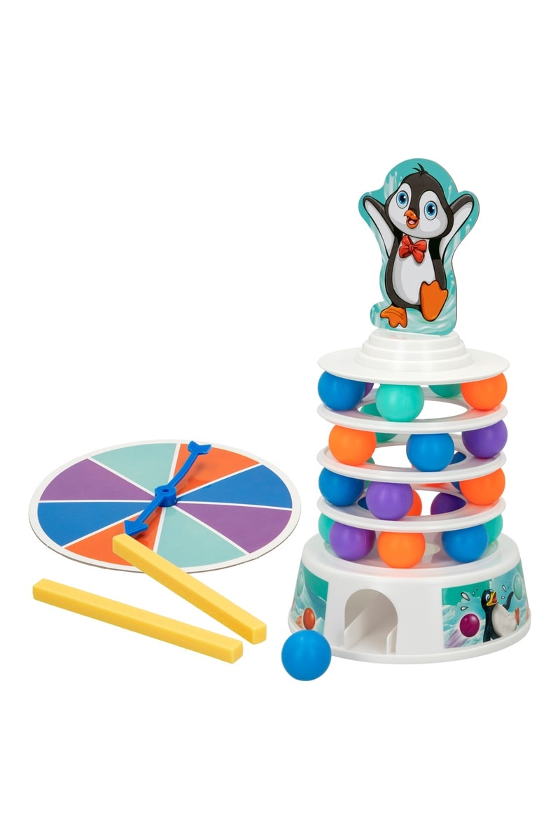 Règle du jeu : retirer les billes de la couleur indiquée par la roulette sans faire tomber le pingouin.