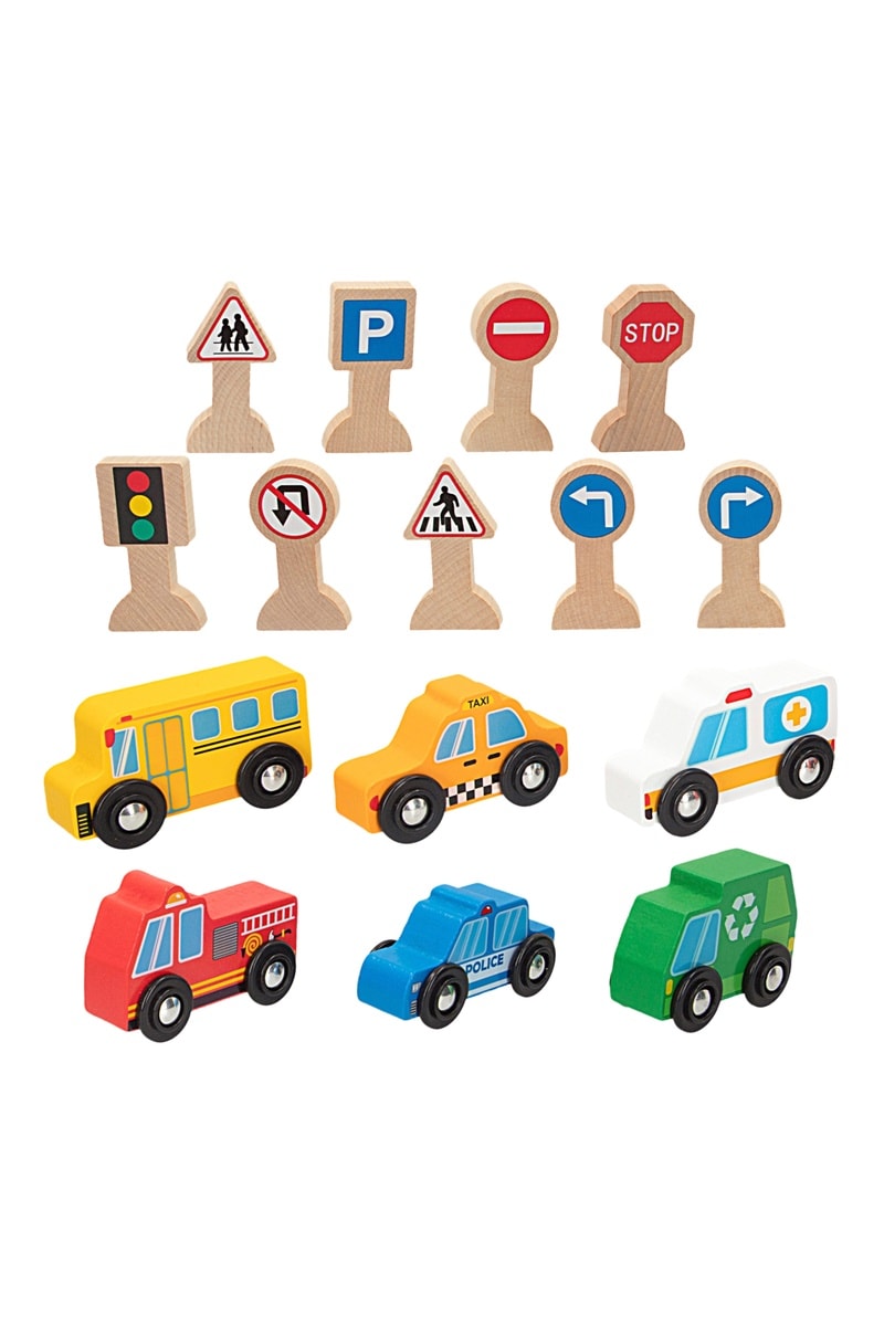 Véhicules et panneaux de circulation en bois - 15 pièces - Dès 18 mois