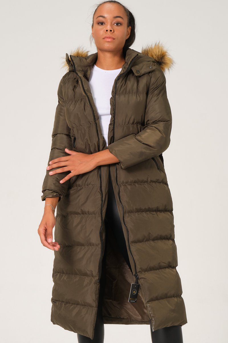 Doudoune longue à capuche - Kaki