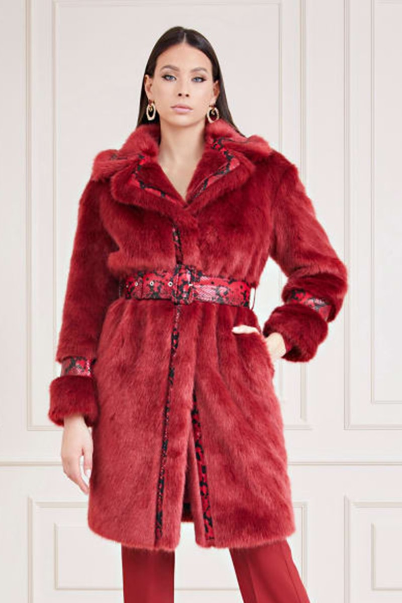 Empiècement effet python à l’encolure, sur les manches et devant.