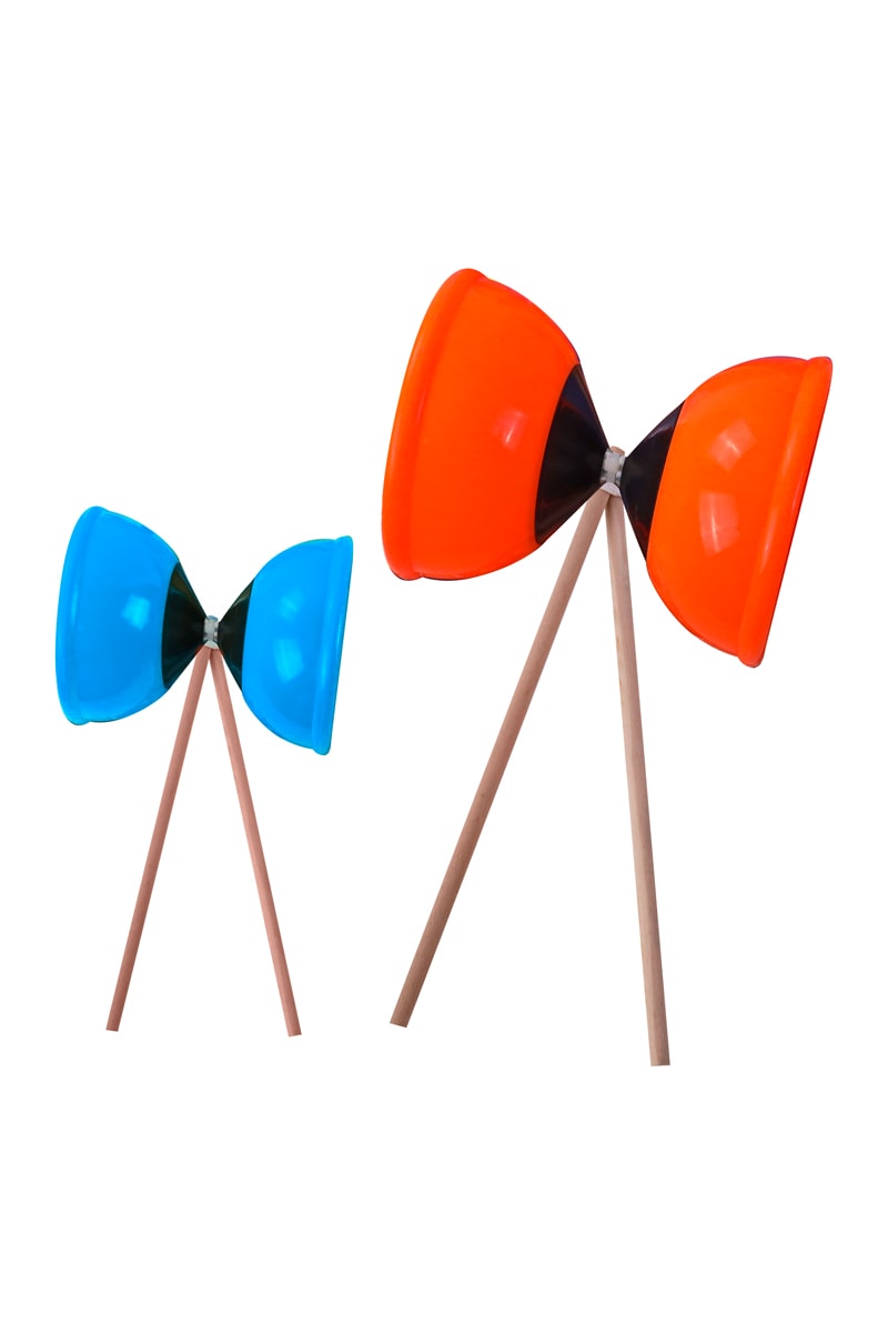 Le diabolo se joue en faisant tourner le diabolo sur une ficelle tendue entre deux bâtons en bois, permettant de réaliser des figures et d'améliorer la coordination et la dextérité.